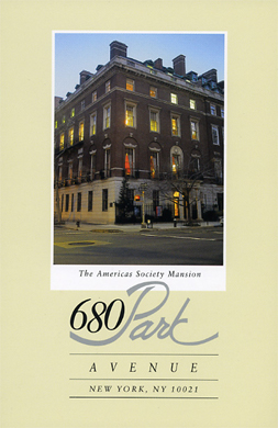 Three panel marketing brochure / folder with pocket for Americas Society's historic headquarters. |